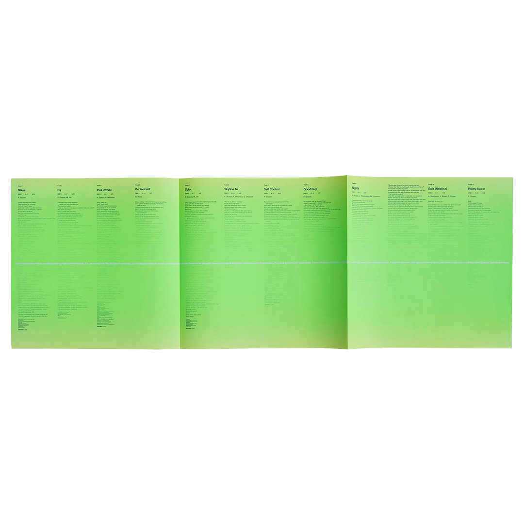 Released on August 20, 2016: "On its surface, Blonde seems tremendously insular. Whereas Channel Orange showed off an expansive eclecticism, this album contracts at nearly every turn. Its spareness suggests a person in a small apartment with only a keyboard and a guitar and thoughts for company. But it isn’t just anyone emoting from the abyss, it’s Frank Ocean. In his hands, such intimacy attracts the ear, bubbles the brain, raises the flesh".